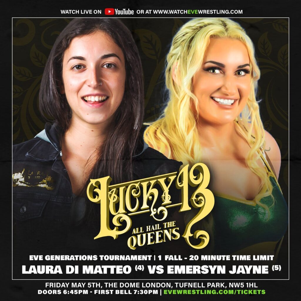 In the other half of the Generations tournament, former EVE Champion Emersyn Jayne takes on the former EVE International and current EVE Tag Team Champion, Laura Di Matteo. These are two names that people outside of the UK may not know, but for my money, this is two of the top five women’s wrestlers in the country going at it and should be an absolute barnburner with the winner facing the winner of the previous match later on in the night with the winner earning an EVE Championship match on July 2. Emersyn Jayne has a very recent history with Millie McKenzie, thus being a time-limit draw in their first-ever meeting last month, so there is some unfinished business there which I think we will see come to a head at the conclusion of this tournament.
