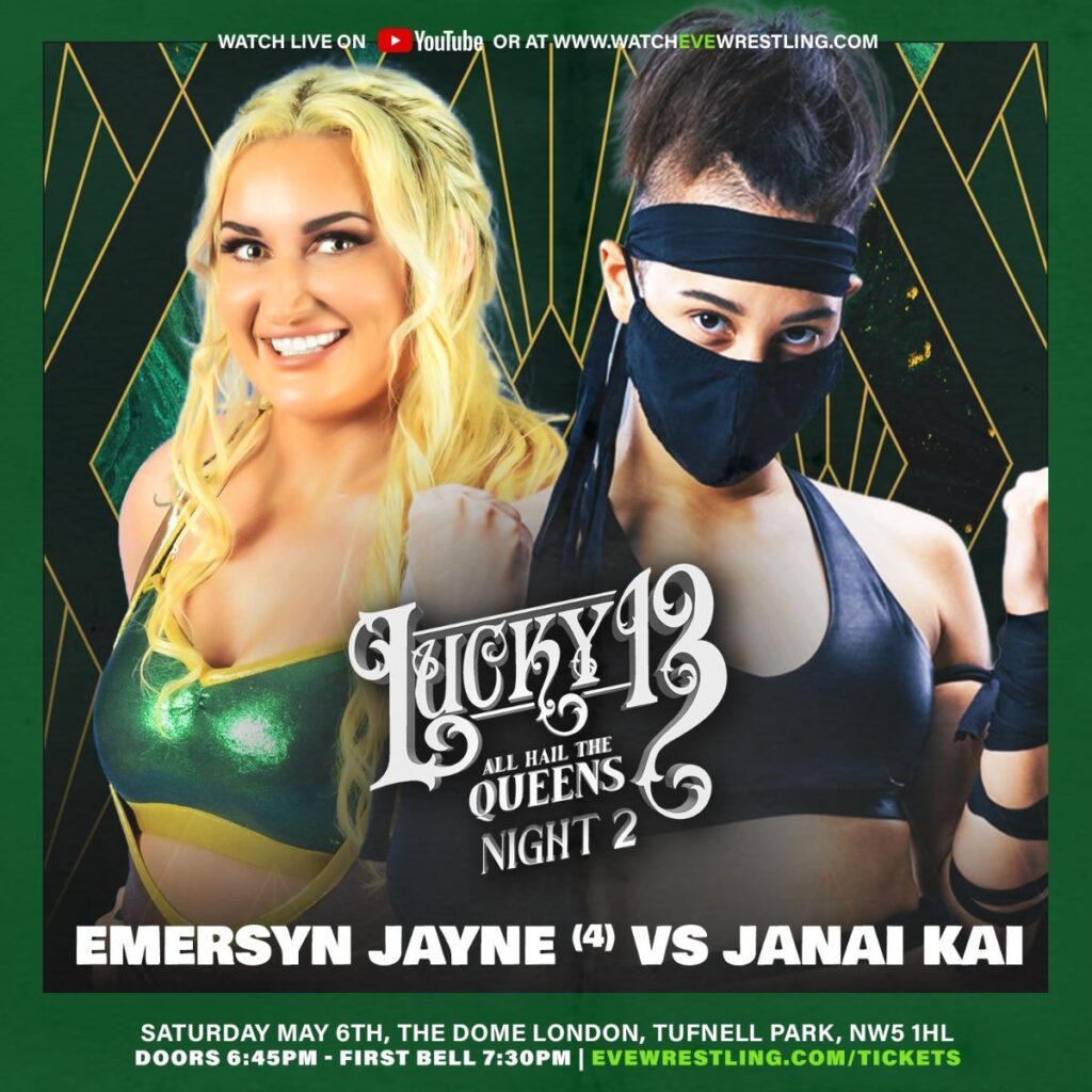 In addition to their respective matches on Night 1, we will see a “Special Challenge Match” on night two as EVE Champion (potentially) Miyu Yamashita takes on Billie Starkz in what is an international dream match. The two have collided twice prior. The aforementioned tag match in TJPW and a triple threat also involved one-half of the next match in Janai Kai. This is the first of two upcoming singles matches between the two and is an intriguing battle on paper between the Ace of TJPW and perhaps the most hyped young women’s wrestler in years, which is absolutely deserved and a lot of people are excited for her EVE debut this weekend. After a Thirty-Minute Iron Woman match on Night One for Miyu, and potentially two matches for Starkz, it will be interesting to see the shape that these two are able to come into this match in, but it promises to be worth the admission or the YouTube subscription alone.