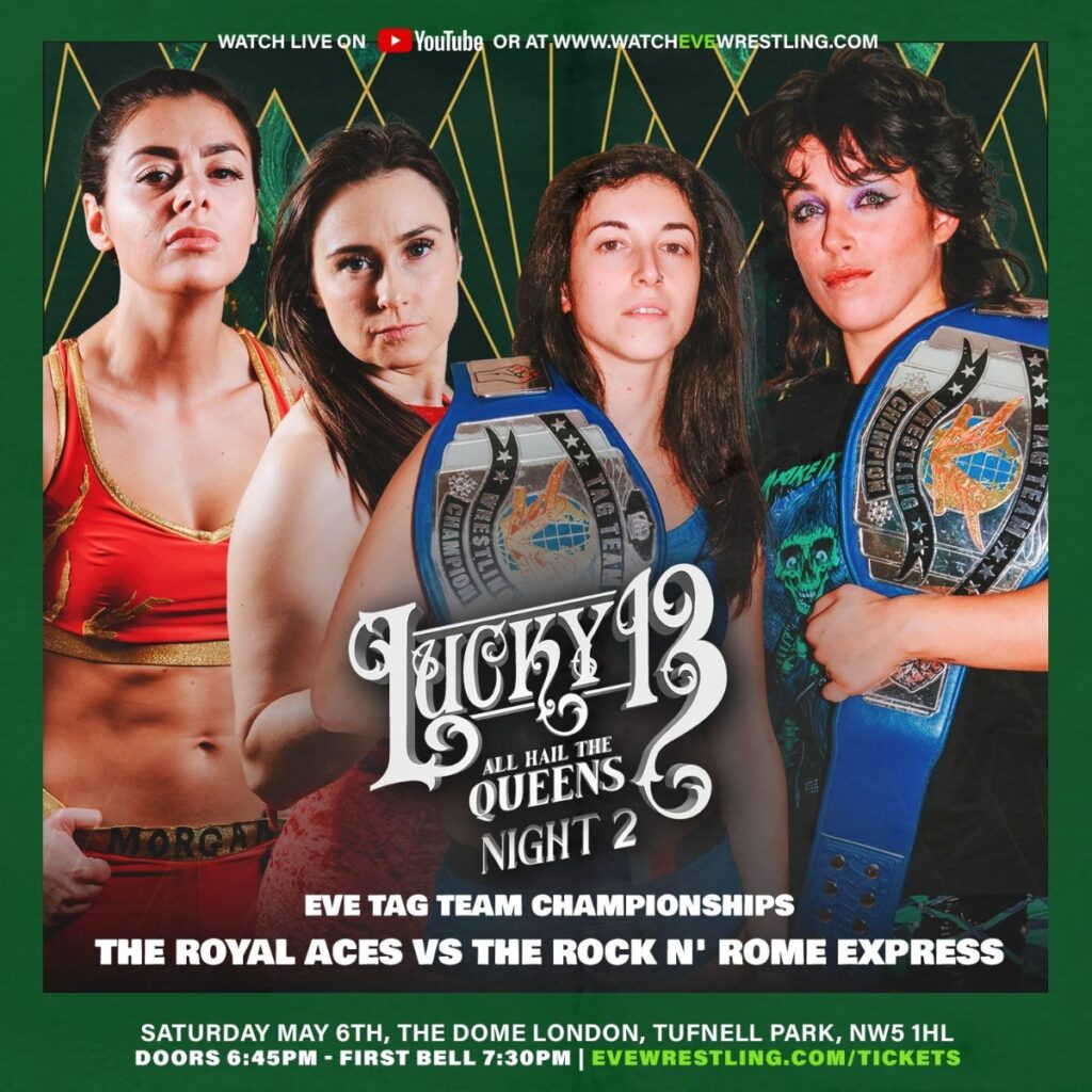 EVE Tag Team Champions – The Rock ‘N’ Rome Express (Rayne Leverkusen and Laura Di Matteo) vs The Royal Aces (Jetta and Charlie Morgan)